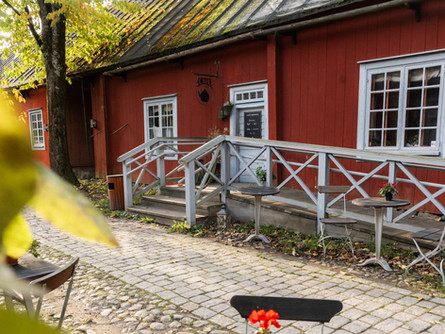 Cafe Qwensel is a unique and idyllic 18th-century cafe located in the courtyard of the Turku Pharmacy Museum, where coffee is served in a copper pot and the display case is filled with fresh, self-baked delicacies every morning.